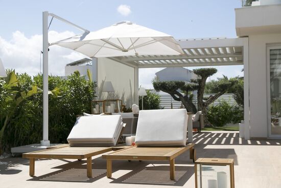 Die ideale Lösung für diejenigen, die einen eleganten Schatten im eigenen Garten wünschen, inspiriert von der Nautik. Details wie die Winde und Stopper, die manuell die beiden dreieckigen Segel aufrollen, sowie die geneigten Pfosten aus elliptischem Aluminium verleihen der Struktur ein dynamisches und modernes Aussehen, ähnlich dem einer Segelyacht. Finden Sie auf der Seite unseres Herstellers weitere Infos dazu, wir sind der offizielle Händler von Giuglio Barbieri in der Schweiz.